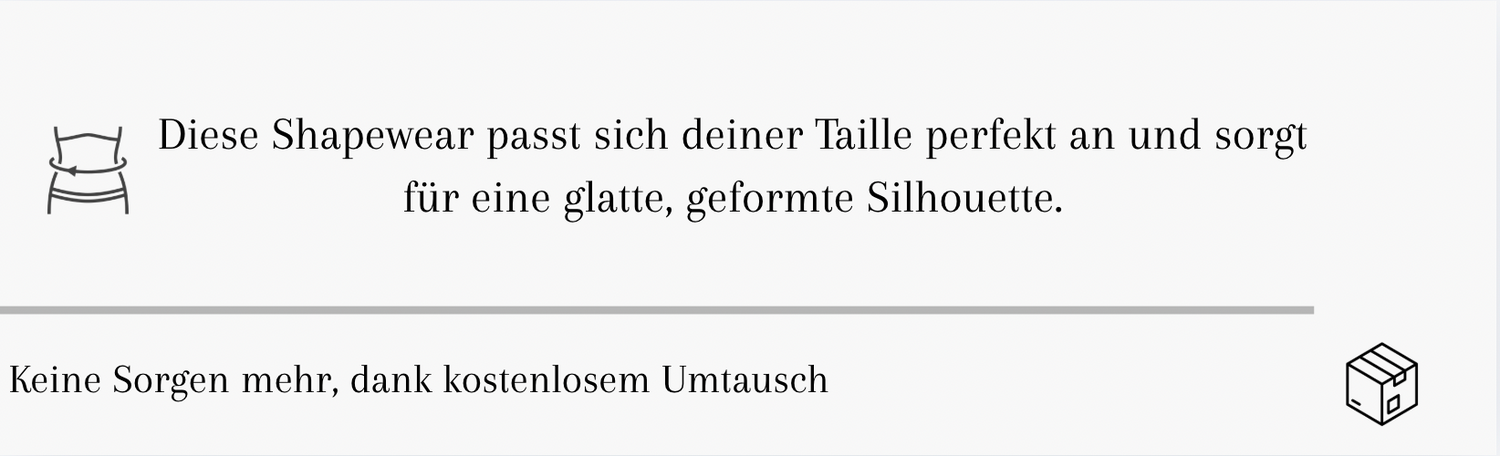 Um sicherzustellen, dass du ebenfalls von unserer Shapewear begeistert bist, bieten wir dir eine 100%ige Zufriedenheitsgarantie. Solltest du aus irgendeinem Grund nicht vollkommen zufrieden sein, kontaktiere einfach unser Kundensupport-Team, und wir werden alles daran setzen, eine Lösung zu finden, die dich glücklich macht.