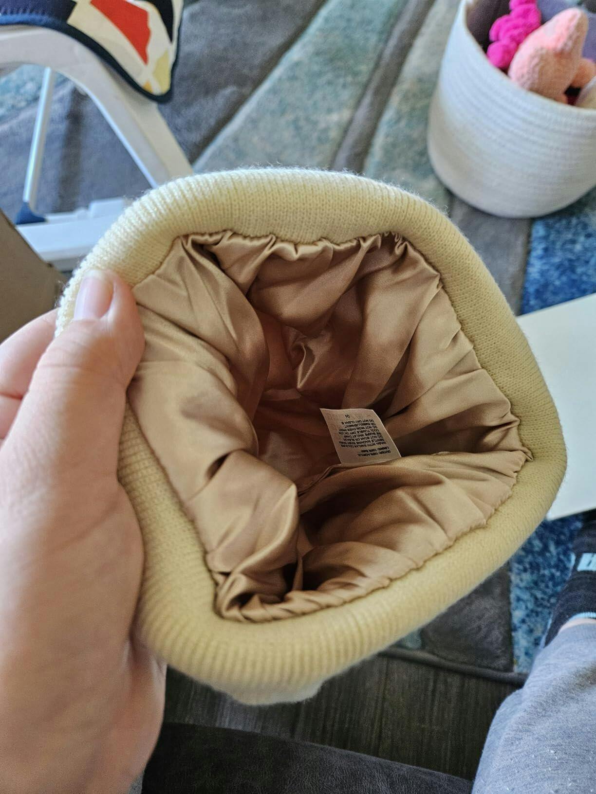 I’ve been wearing this almost daily for walks and errands, and it’s honestly the first beanie that doesn’t leave my hair frizzy or flat when I take it off. It feels soft on the inside and warm without being too heavy.